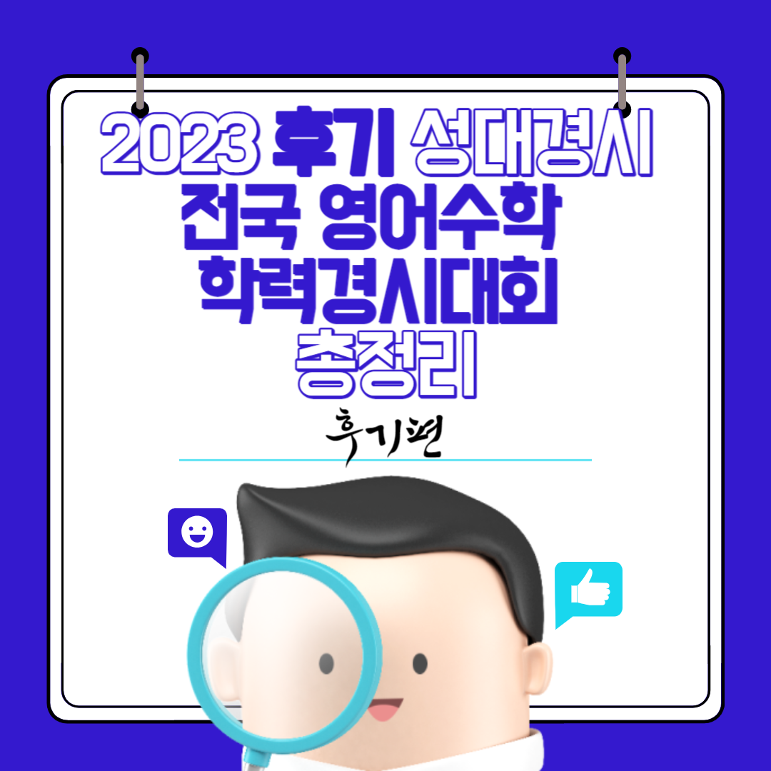 | 2023 성대경시 (지금은 전국영어수학학력경시) 대회 알아보기 (4) | 2023.03.28 |