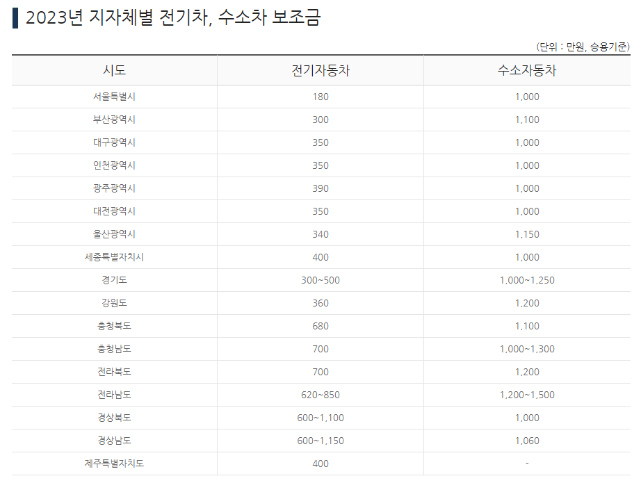 (※2023. 4.10 수정, 전국 지자체별 보조금 예산이 확정됐습니다. 아래 링크를 누르시면 서울외 지역도 확인가능합니다.)